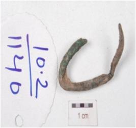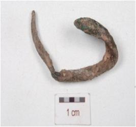 | Description / विवरण | A fragment of copper nail with rectangular in section, slightly curved and pointed end. |
