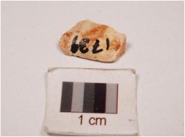 | Description / विवरण | A chert flake with one flake scar on the surface. |