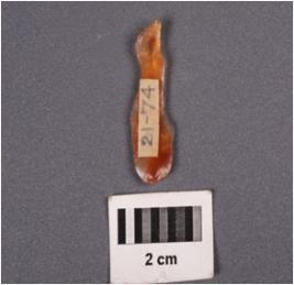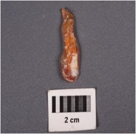 | Description / विवरण | A parallel sided blade with a ridge dorsal surface, prominent bulb on ventral surface, prepare platform, use-wear marks along cutting edges, raw material given heat treatment. |