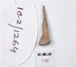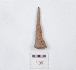 | Description / विवरण | Fragment of iron nail with flat circular head, circular cross-section pointed end. |