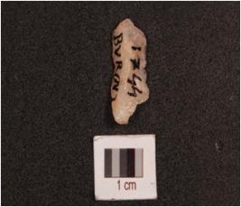 | Description / विवरण | A quartz flake with two flake scars on the surface. |