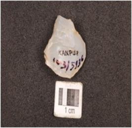 | Description / विवरण | Core, made on chalcedony, seven blade scars with ripple marks on surface. |