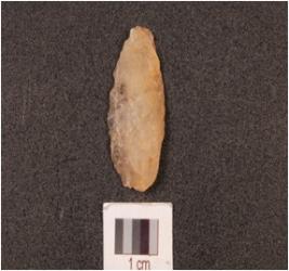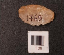 | Description / विवरण | Side scraper made on quartz with three flake scars on surface. |