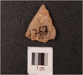 | Description / विवरण | Flake made on quartz with two flake scars on surface. |