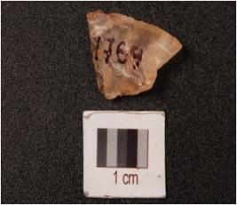 | Description / विवरण | Flake made on quartz with three flake scars on surface. |