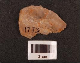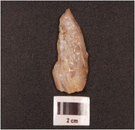 | Description / विवरण | Point made on quartz with distal end broken prepared platform and flake scars on surface. |