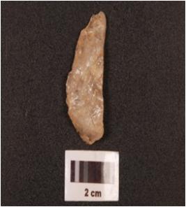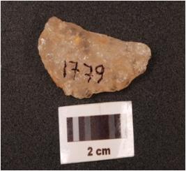 | Description / विवरण | A quartz flake with flake scars on surface. |