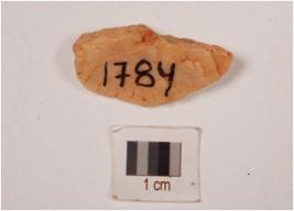| Description / विवरण | Chert flake with five flake scars on surface. |