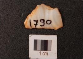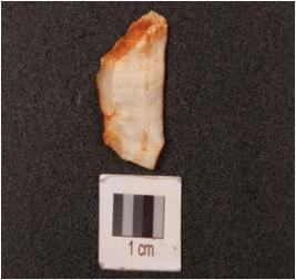 | Description / विवरण | Chert flake with prominent bulb, prepared platform and alternate flake scars on surface. |