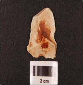 | Description / विवरण | Chert flake with prepared platform, prominent bulb and alternate three flake scars on surface. |