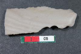 | Description / विवरण | Blade with two dorsal ridges and a bulb of percussion on the ventral side having smooth surface. |