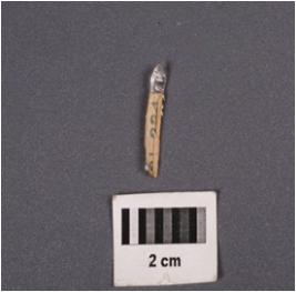 | Description / विवरण | A micro parallel sided blade with single ridge on dorsal surface, partly broken proximal end, intact distal end, use-wear makrs along the cutting edge. |