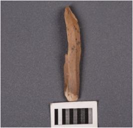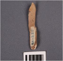 | Description / विवरण | A parallal sided blade with double surface, prepared platform, partly broken along the left cutting edge, use-wear marks along the cutting edge. |