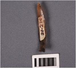| Description / विवरण | A blunted blade with a ridge on dorsal surface, irregular retouch on the cutting edge. Diffused bulb on the ventral surface, prepared platform on proximal end, intact distal end, core given heat treatment , use-wear marks along the cutting edges. |