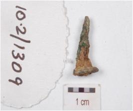 | Description / विवरण | A copper nail oval head and pointed tip. |