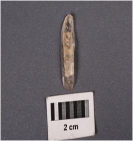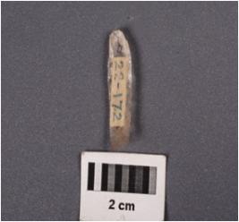 | Description / विवरण | A parallal sided blade with a ridge on dorsal surface, diffused bulb on ventral surface, prepared platform, use-wear marks along cutting edges. |