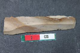 | Description / विवरण | Fragment of a parallel sided blade with one dorsal ridge having smooth surface. |