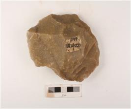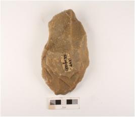 | Description / विवरण | Quartzite handaxe, made on pebble, alternate flake scars on both surface and cutting irregular cutting edges. |