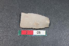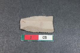 | Description / विवरण | Fragment of a blade with two dorsal ridges having smooth surface. It also has bulb of percussion on the ventral side. |