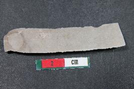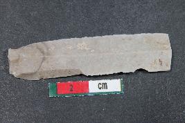 | Description / विवरण | A fragment of a blade having one dorsal ridge with positive bulb of percussion. It has smooth surface. |