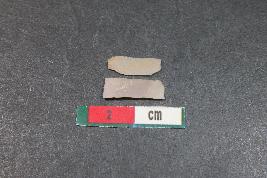 | Description / विवरण | Fragment of a blade with two dorsal ridges having smooth surface. Shorter fragment with one dorsal ridge and bulb of percussion on the ventral side has Length equivalent to 1 cm. |