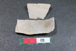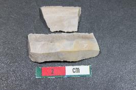 | Description / विवरण | Fragment of blades with two dorsal ridges having smooth surface. Shorter fragment has Length equivalent to 1.3 cm. |