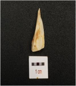 | Description / विवरण | A chert flake with triangular shaped, distal end pointed and proximal is broad. |