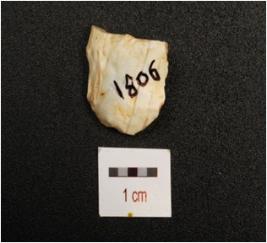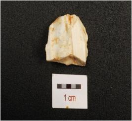 | Description / विवरण | A chert flake, irregular shaped and blade scars on the surface. |