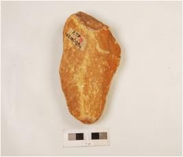 | Description / विवरण | Miniature handaxe made on quartzite flake by soft hammer technique, flake scars on both sides, retouches along the cutting edges and prepared platform. |