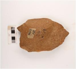 | Description / विवरण | A scraper made on flake, large flake scars on dorsal prominent bulb on ventral and made on side struck flakes. |