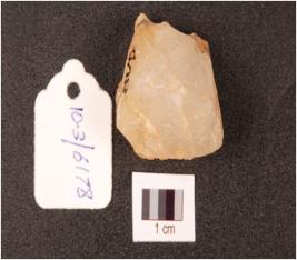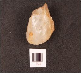 | Description / विवरण | A round stone core made on quartz, uneven on surface, flake scars are visible. |