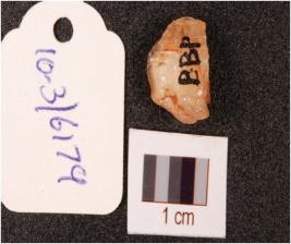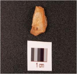 | Description / विवरण | A flake made on quartz, uneven on dorsal side, flake scars are visible, irregular in shape. |
