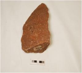 | Description / विवरण | A handaxe made on quartzite stone, flaking marks on dorsal, irregular cutting edges, platform is visible and soft hammer technique is used. |