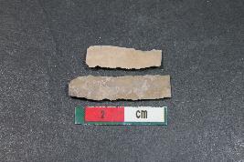| Description / विवरण | Fragment of a Blade with two dorsal ridges and bulbcof percussion on the ventral side having smooth surface.Shorter fragment has Length equivalent to 1.8 cm. |