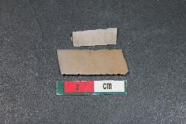 | Description / विवरण | Fragment of a Blade with two dorsal ridges having smooth surface. Shorter fragment along with one dorsal ridge has Length equivalent to 1.4 cm. |