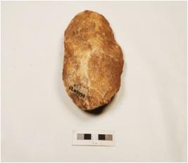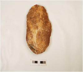 | Description / विवरण | A handaxe, cortex present on one side, edges are made by employing soft hammer technique. |