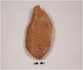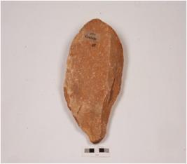 | Description / विवरण | A handaxe, made on side struck flake, flake on one side and irregular retouch on the cutting edges. |
