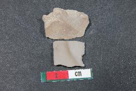 | Description / विवरण | Fragment of blade with one dorsal ridge and smooth surface.The smaller piece has two dorsal ridge. |