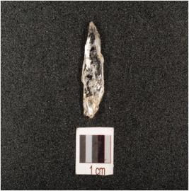 | Description / विवरण | Point made on quartz, pointed at distal end, broken proximal end, bulnted lateral sides, bulb absent, |