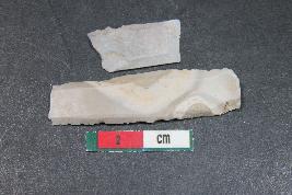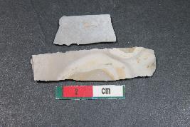 | Description / विवरण | Fragment of a blade with two dorsal ridges and bulb of percussion on the ventral side having smooth surface. Shorter fragment has Length equivalent to 1.8 cm. |