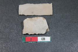| Description / विवरण | Fragment of blades with two dorsal ridges having smooth surface. Shorter fragment has Length equivalent to 1.8 cm. |