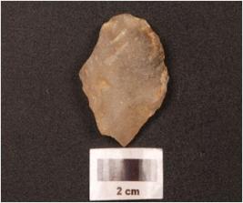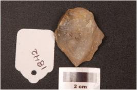 | Description / विवरण | A side scraper made on quartz with prepared platform and diffused bulb, irregular along the cutting edges and smooth surface. |