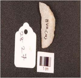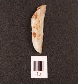 | Description / विवरण | A lunate on end-struck quartz flake, prepared platform on proximal end, diffused bulb on ventral side, ridge on dorsal side, one straight sharp cutting edge, other concave blunted edge with fish scale like retouching. |