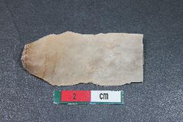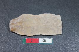 | Description / विवरण | A fragment of a blade having one dorsal ridge with bulb of percussion. It has smooth surface. |