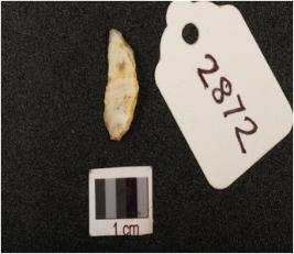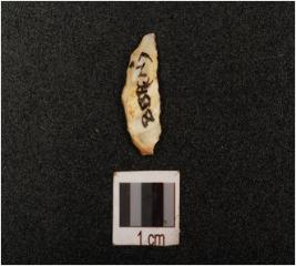 | Description / विवरण | Lunate made on chalcedony with sharp working edge at one side, blunted at other side, intact both ends, use ware marks along the cutting edge, bulb absent, |