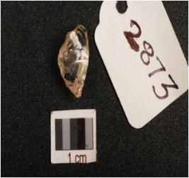 | Description / विवरण | Lunate made on quartz, sharp working edge at one side, blunted at other side, intact both ends, flake scars visible on dorsal surface, bulb absent, |