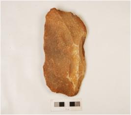 | Description / विवरण | A unifacial side scraper on a side struck flake with flake scars on dorsal, bulb on ventral and irregular retouches on working edge. |