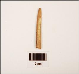 | Description / विवरण | Fragment of bone point with plano convex-cross section, surface is smooth and one end slightly broken. |