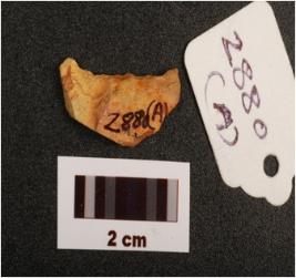 | Description / विवरण | Lunate made on chert with sharp edge on one side, blunted at other side, intact both ends, flake scars visible on surface, |