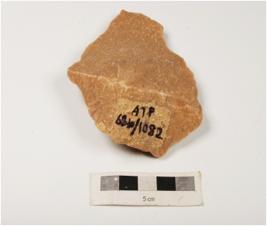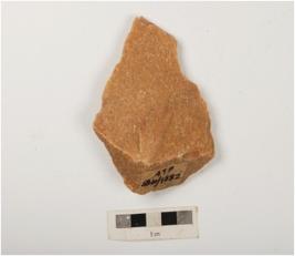 | Description / विवरण | A side scraper made quartzite on side struck flake with prominent bulb on ventral edges are sharp and pointed, prepared platform and a ridge on dorsal side. |